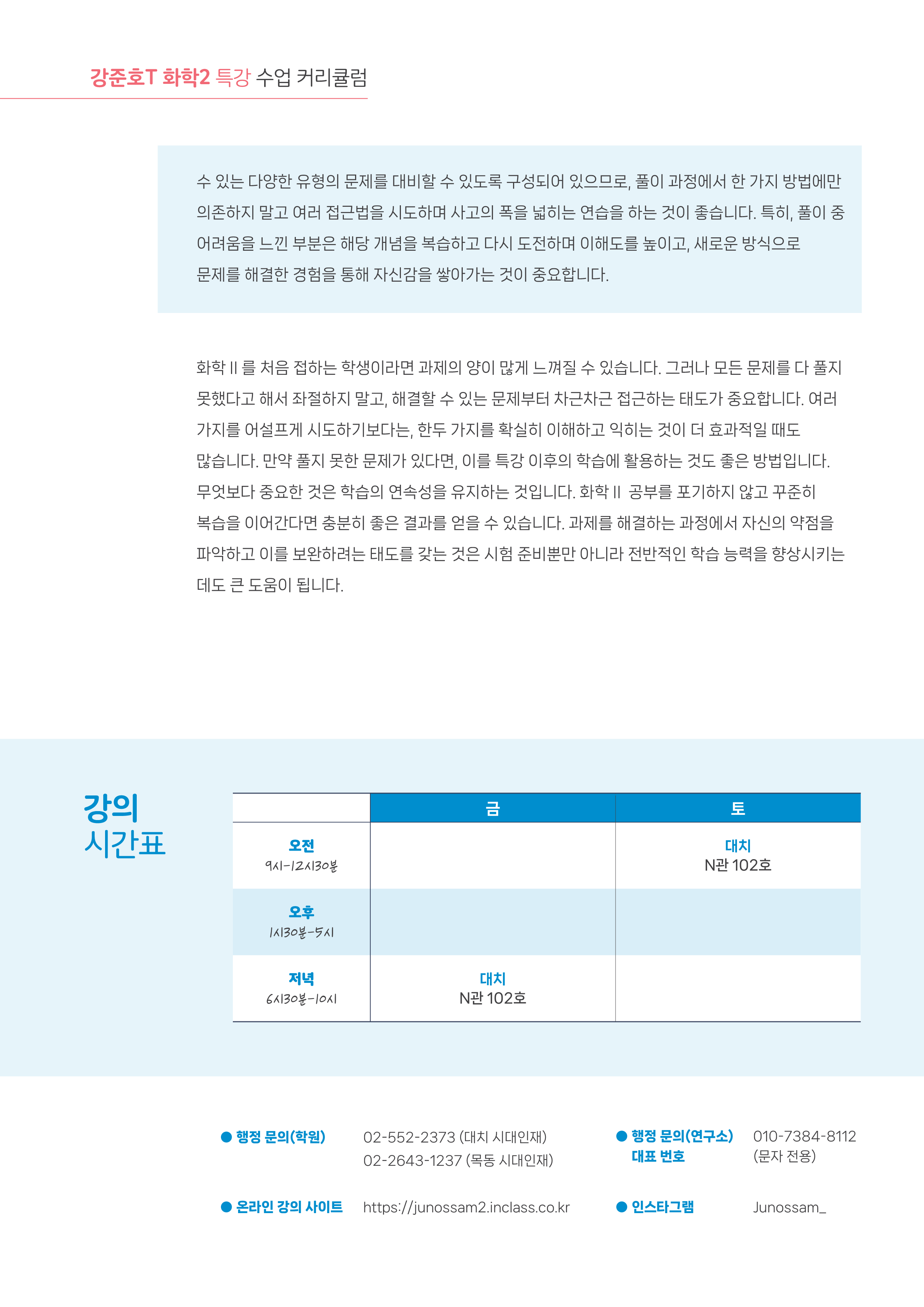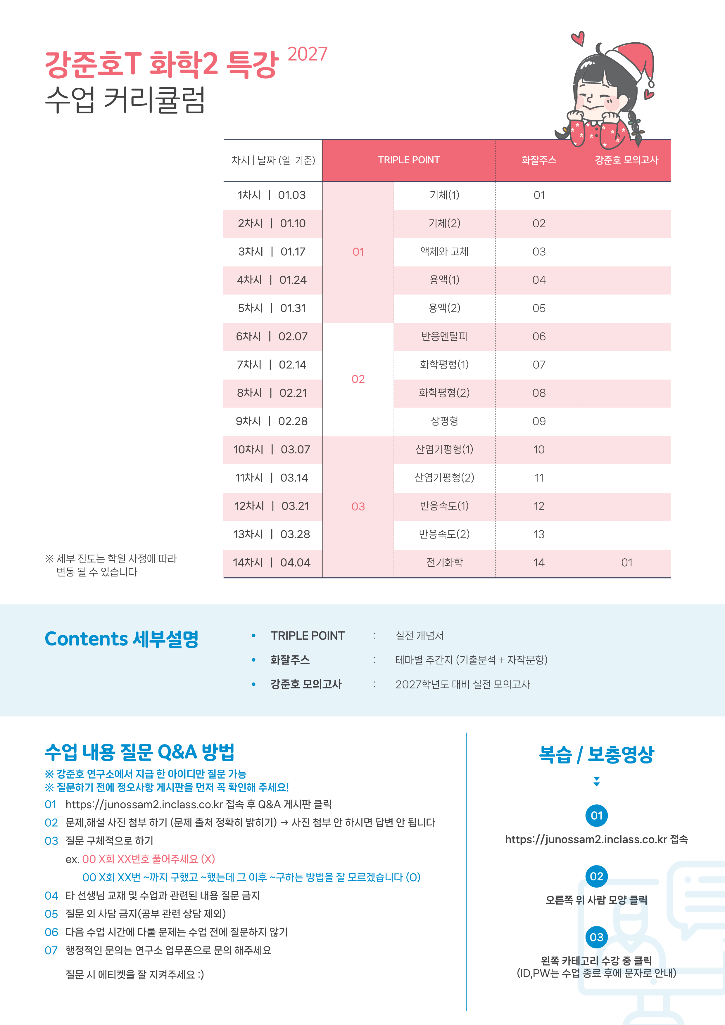 강준호T 화학2 2027학년도 특강 수업 커리큘럼